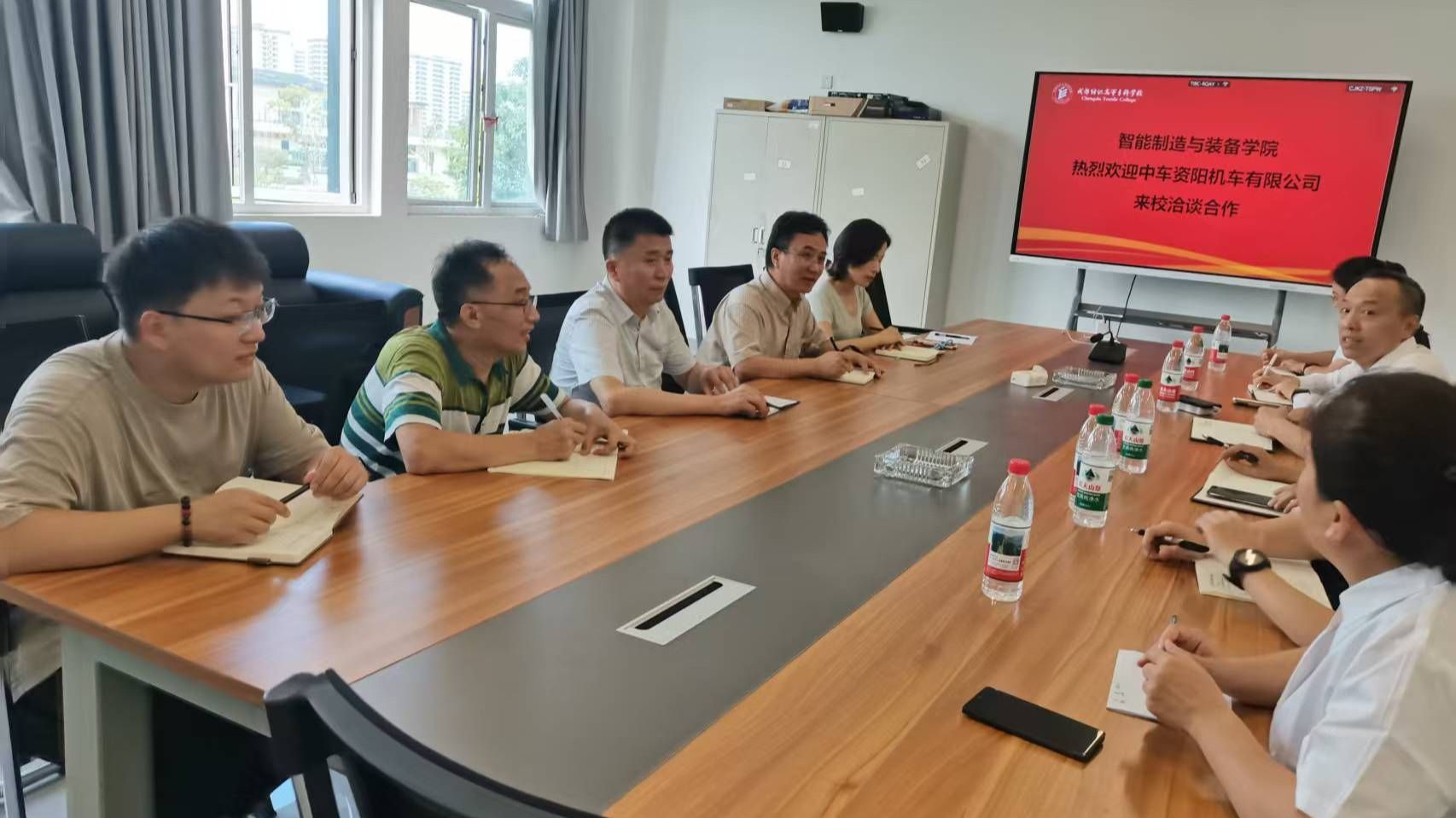 活动中,学院领导与中车资阳机车有限公司代表举行了人才培养与合作发展座谈会。企业方结合岗位需求,明确表示希望招聘能快速适应岗位、具备独立上手能力的技能型人才。为此,企业建议学校进一步加强实践实习类教学,鼓励学生在校期间积极考取相关职业技能证书,以提升就业竞争力。学院领导则详细介绍了专业布局、人才培养特色及中德项目班等特色班级的建设情况,强调学院始终以企业需求为导向,致力于培养“毕业即上岗、上岗即胜任”的高素质技术人才。双方还就“订单班”合作的具体细节进行深入交流,达成了后续深化协同育人的初步共识。