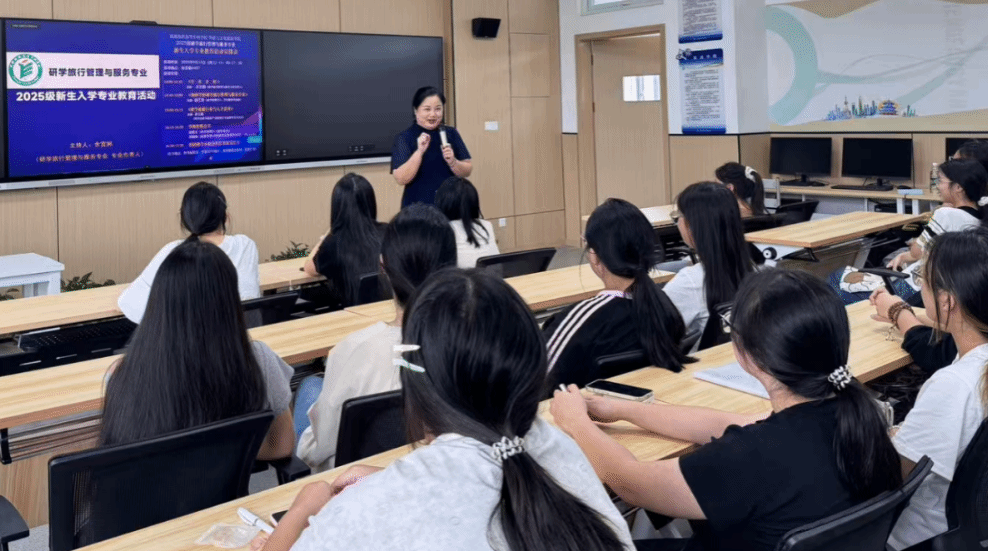 9月13日下午,外语与文化旅游学院为研学旅行管理与服务专业为2025级新生举办了一场内容丰富的入学专业教育,帮助新生深入了解专业内涵、明确学习方向、激发学习热情,为其大学之旅奠定坚实基础。活动由专业负责人余宜娴主持,教研室部分教师、企业导师及优秀校友代表共同参与。