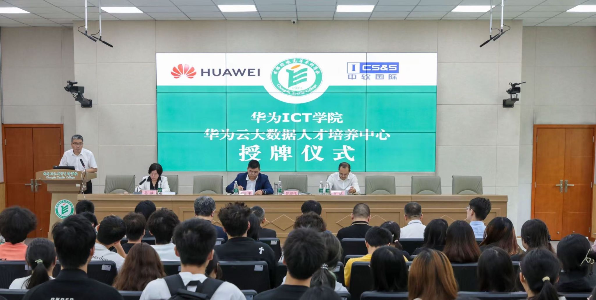 9月23日,华为ICT学院、华为云大数据人才培养中心授牌仪式在学校隆重举行。学校党委书记任迎伟,华为技术有限公司川藏政企教育医疗行业总经理胡治平、中软国际教育集团助理总裁文斌出席签约仪式,会议由学校党委常委、副校长吴越主持。