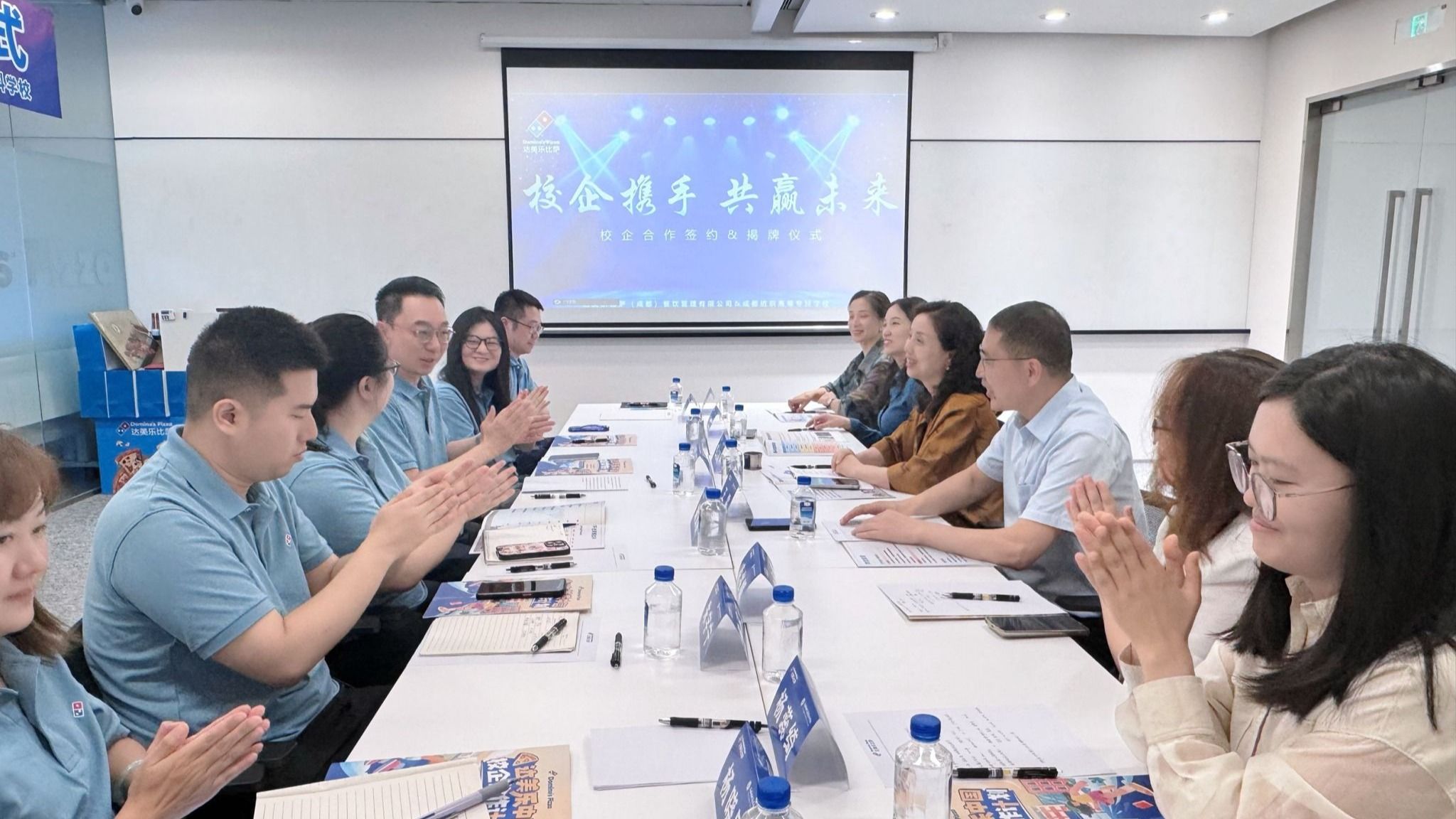 9月22日,学校党委常委、纪委书记张江婴率队,数管学院党总支书记王霖等一行6人赴达美乐比萨(成都)餐饮管理有限公司走访调研,并举行校企合作签约授牌仪式。达美乐华西区总经理林华滨、华西区人力资源主管刘婷、华西区培训经理董绚等陪同调研并参加签约授牌仪式。