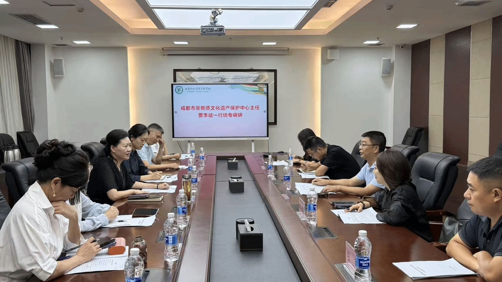9月25日,成都市非物质文化遗产保护中心主任贾李斌一行来校开展调研交流,与学校党委常委、副校长刘莉和织绣技艺非遗数字化保护与传承四川省文化和旅游厅重点实验室(以下简称“省重点实验室”)相关负责人就省重点实验室及产学研用协同创新中心建设工作展开专题讨论。