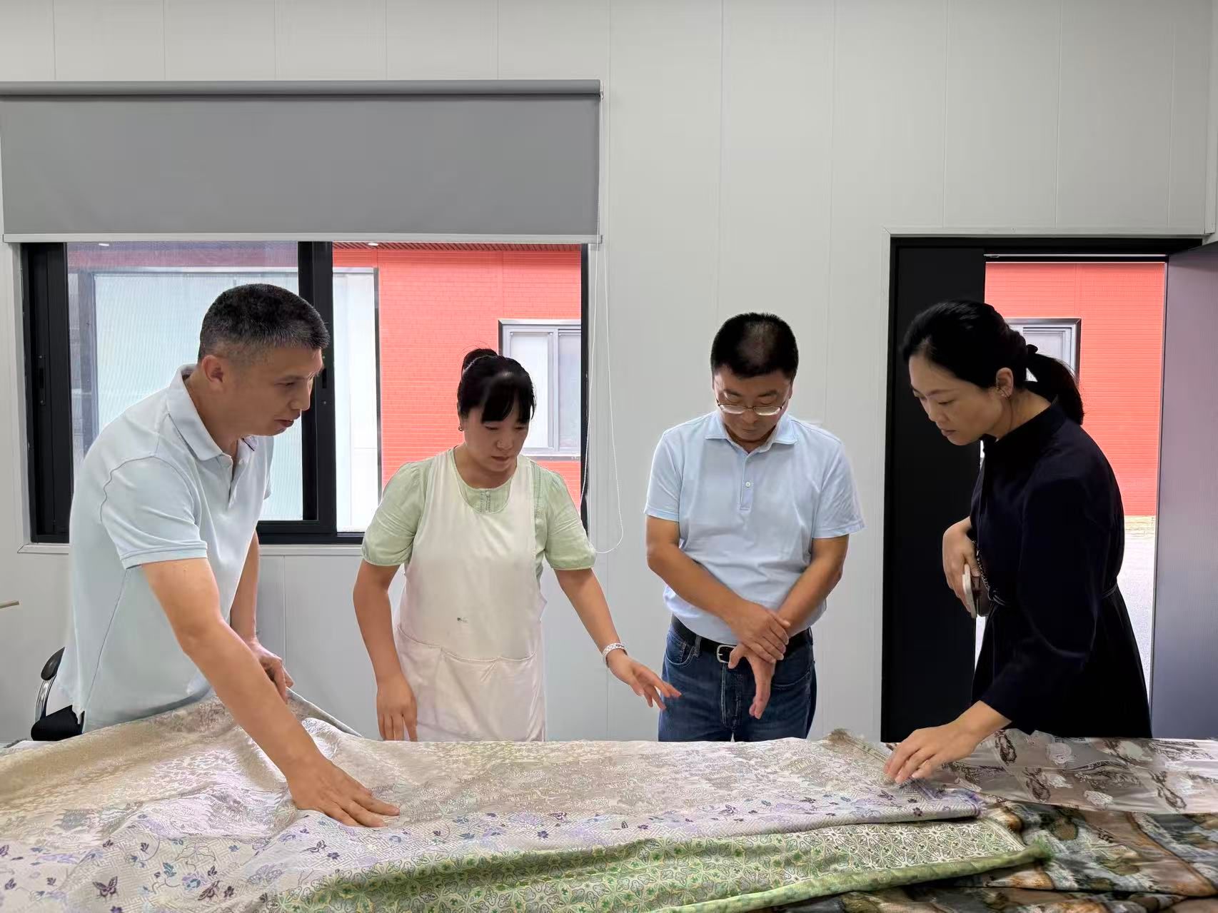 调研组先后参观织绣技艺非遗研究中心、织造技艺非遗研究中心及中试基地,全方位了解了省重点实验室在织绣非遗保护、研究和成果转化方面的工作成效。