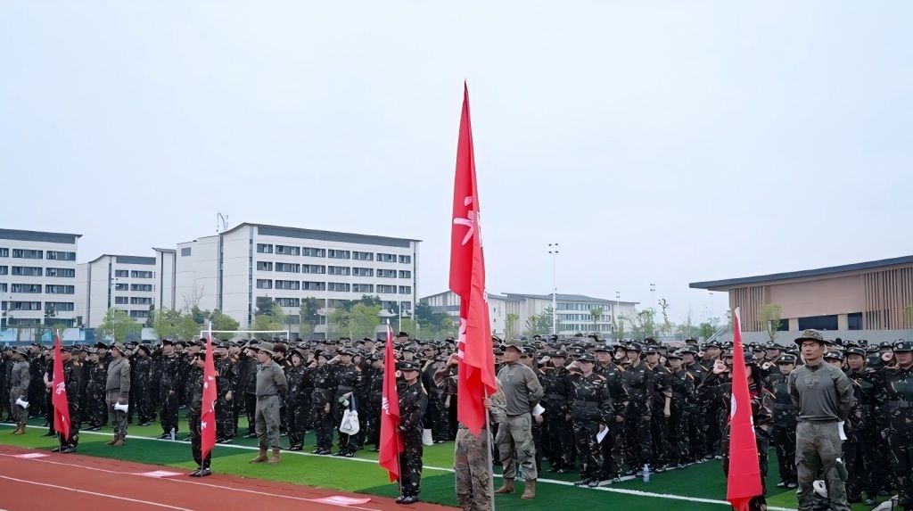 全体参训学生宣誓环节,铿锵的誓言展现了同学们迎接挑战、奋勇争先的昂扬斗志。动员大会在热烈激昂的氛围中圆满结束,2025级学生的军事训练征程正式启航。