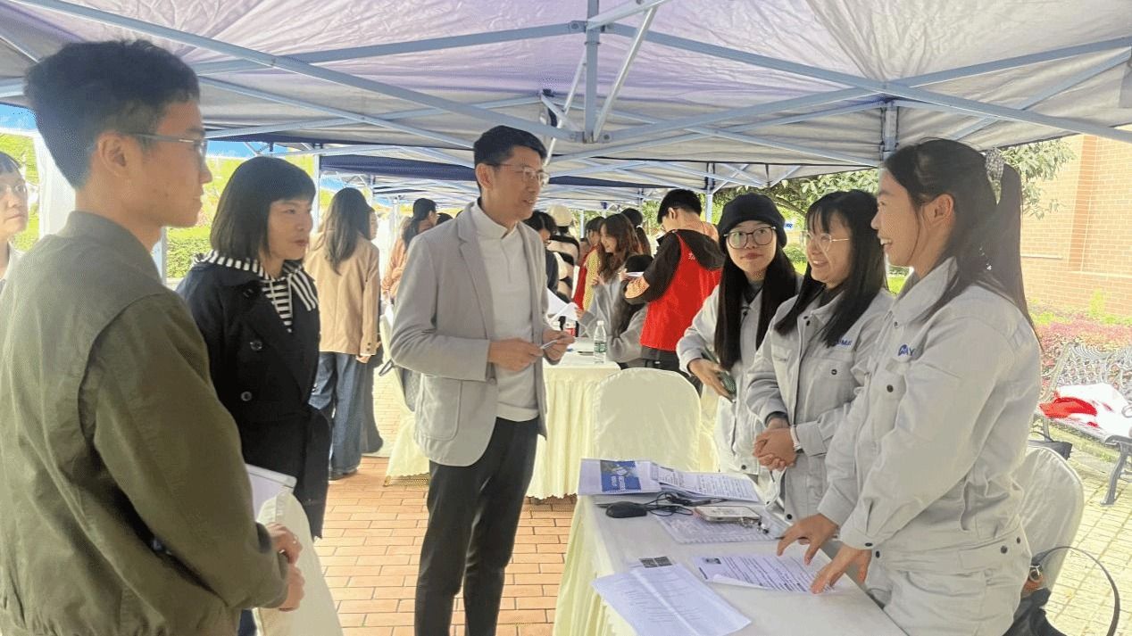 双选会现场人头攒动,气氛热烈而有序。用人单位精心布置展位,通过宣传展板、手册等物料展现企业实力与发展前景;部分企业还同步开展专场宣讲,清晰解读岗位晋升路径、员工培训体系及职业发展空间,吸引毕业生驻足咨询。