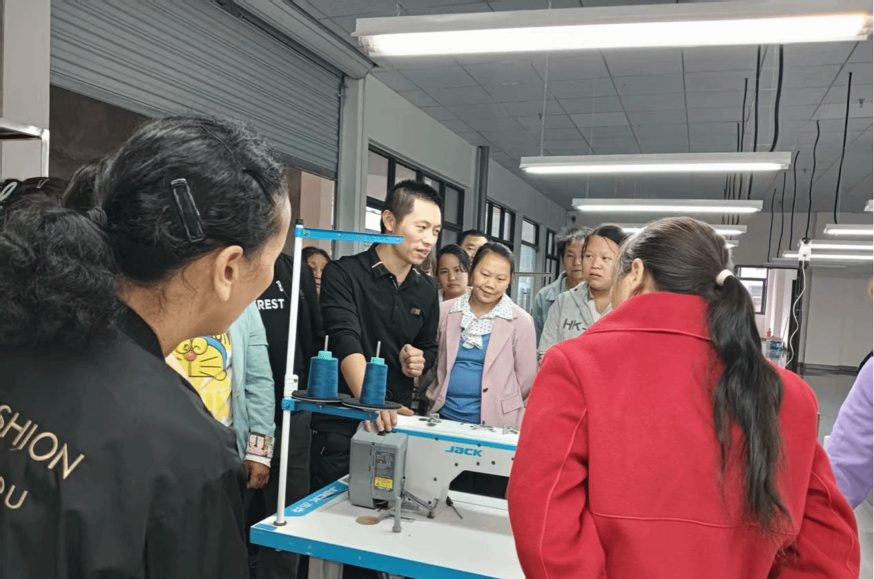 培训紧密契合乡村工厂的实际生产需求,在延续“理论精讲+实操演练”这一高效模式的基础上,结合龙华镇学员的复训需求,对课程内容加以深化,着重提升了学员在复杂缝制工艺以及生产品质管控等方面的进阶能力。