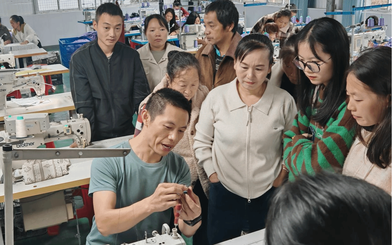 本期培训中,校企联合培训团队辗转三地开展密集培训,进一步拓展了项目覆盖范围,彰显了“政校园企”协同机制的高效性。培训将“企校双师、工学交替”的现代学徒制模式推广至“乡村工厂”,实现优质职教资源的精准落地,为屏山县纺织产业持续输送高技能人才,有力推动了农村劳动力向产业工人转变,更为乡村振兴注入了源源不断的动力。
