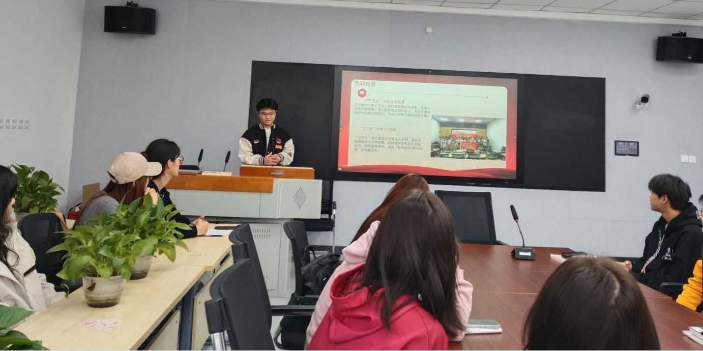 季俊玲向与会学生介绍了“三下乡”活动。同时,结合自己大学期间参与“三下乡”社会实践活动的亲身经历,谈到社会实践过程中遇到的困难及解决思路,以及参与社会实践活动给个人带来的收获。