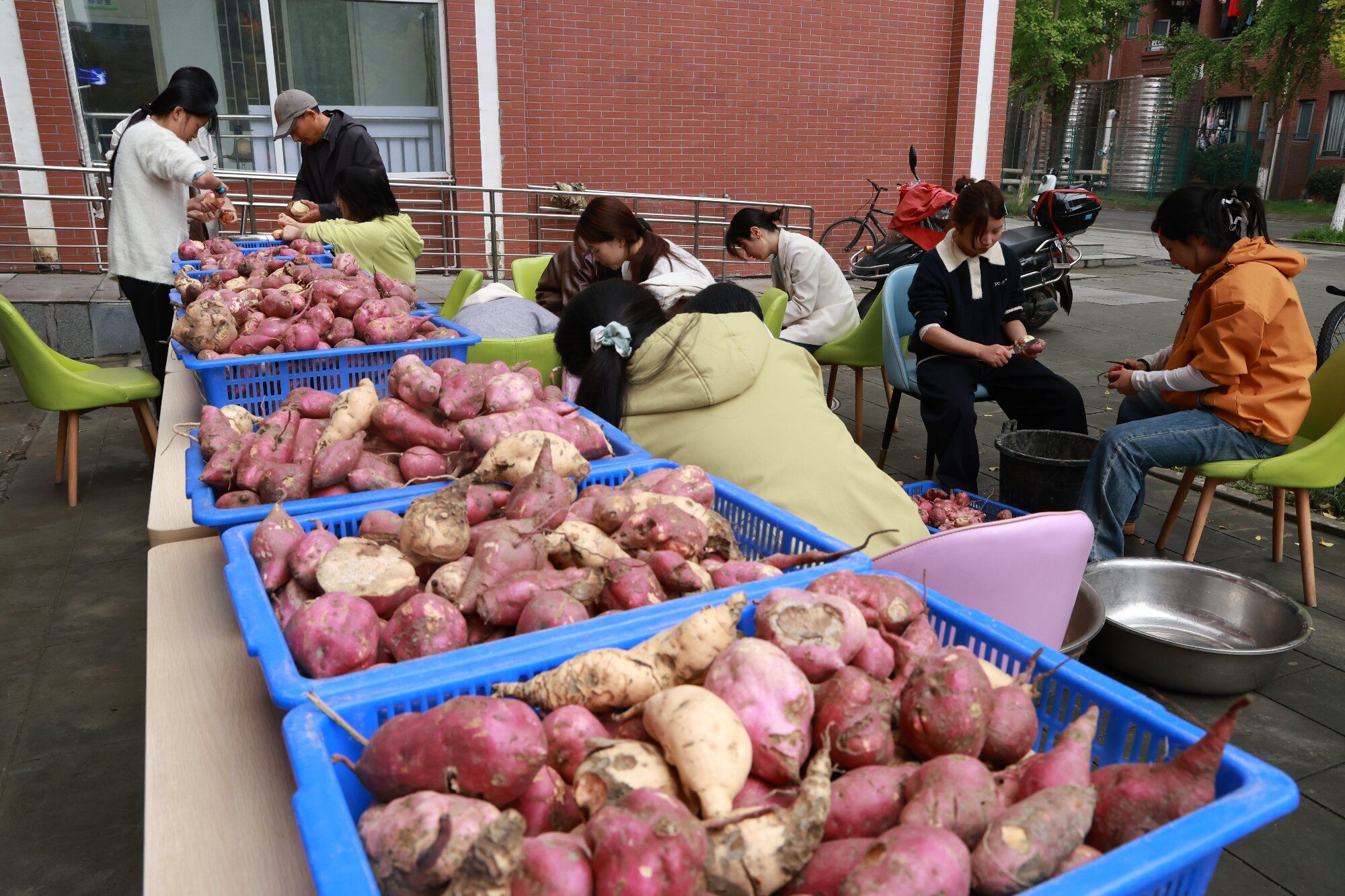 回首活动筹备之路,数管学院师生全程投入。从参与田间地头的红薯挖掘,到筛选时仔细挑出每一颗品相完好的果实,再到小心翼翼地将红薯装车运输、反复冲洗去除泥沙,每一个环节都留下了师生们忙碌的身影。