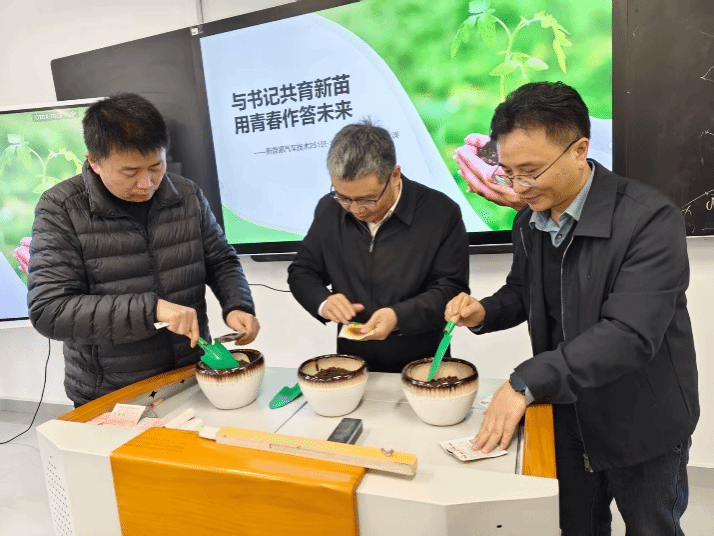 班会的尾声温馨而富有深意。班级准备了向日葵种子,邀请学校、学院领导共同播下。辅导员在总结中动情地说:领导们今天为我们播下的,不只是向日葵的种子,更是关怀的种子、肯定的种子、希望的种子。这份期望,来自书记,来自学校,更来自我们身处的伟大时代。它是一份沉甸甸的“青春考题”,而答案,就写在未来我们每一次的拼搏与成长里。希望同学们以此为契机,书写好自己的“种子成长计划”。
