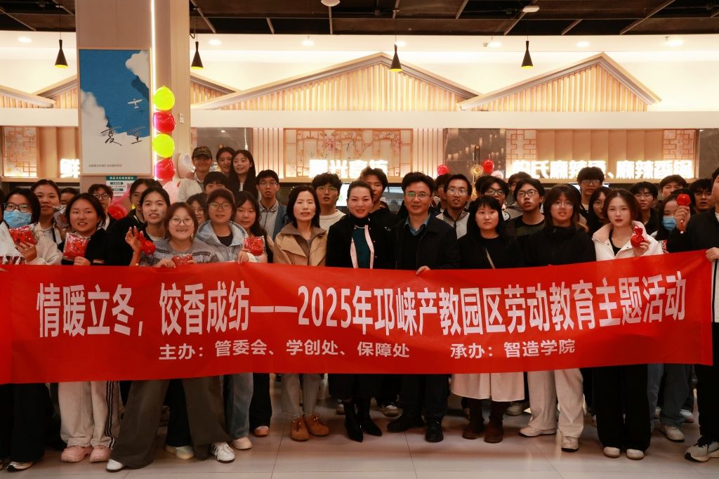 11月7日上午,由邛崃产教园区管委会、学创处与保障处主办,智造学院承办的“情暖立冬,饺香成纺”包饺子活动在邛崃产教园区举行。60名来自智造、文旅、建环学院的同学参加活动,师生们共同完成了3000余个手工饺子的制作与分享。