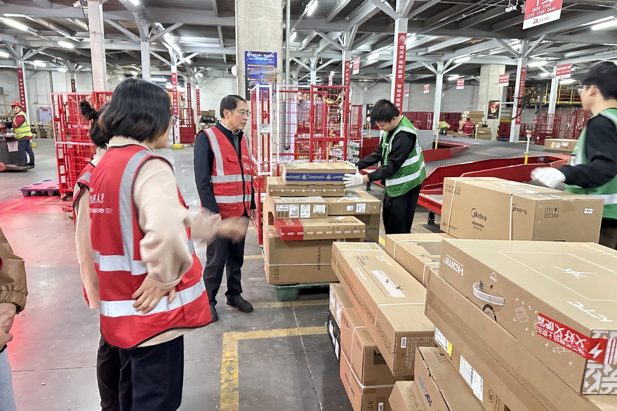11月10日,数字经贸与管理学院党总支书记王霖、副院长(主持工作)何凌、辅导员唐梦蛟、实习指导教师李居垚前往京东集团新都亚洲一号园区,看望正在实习的学生。