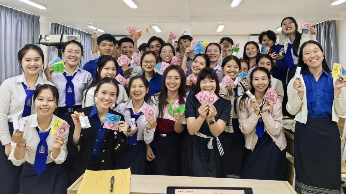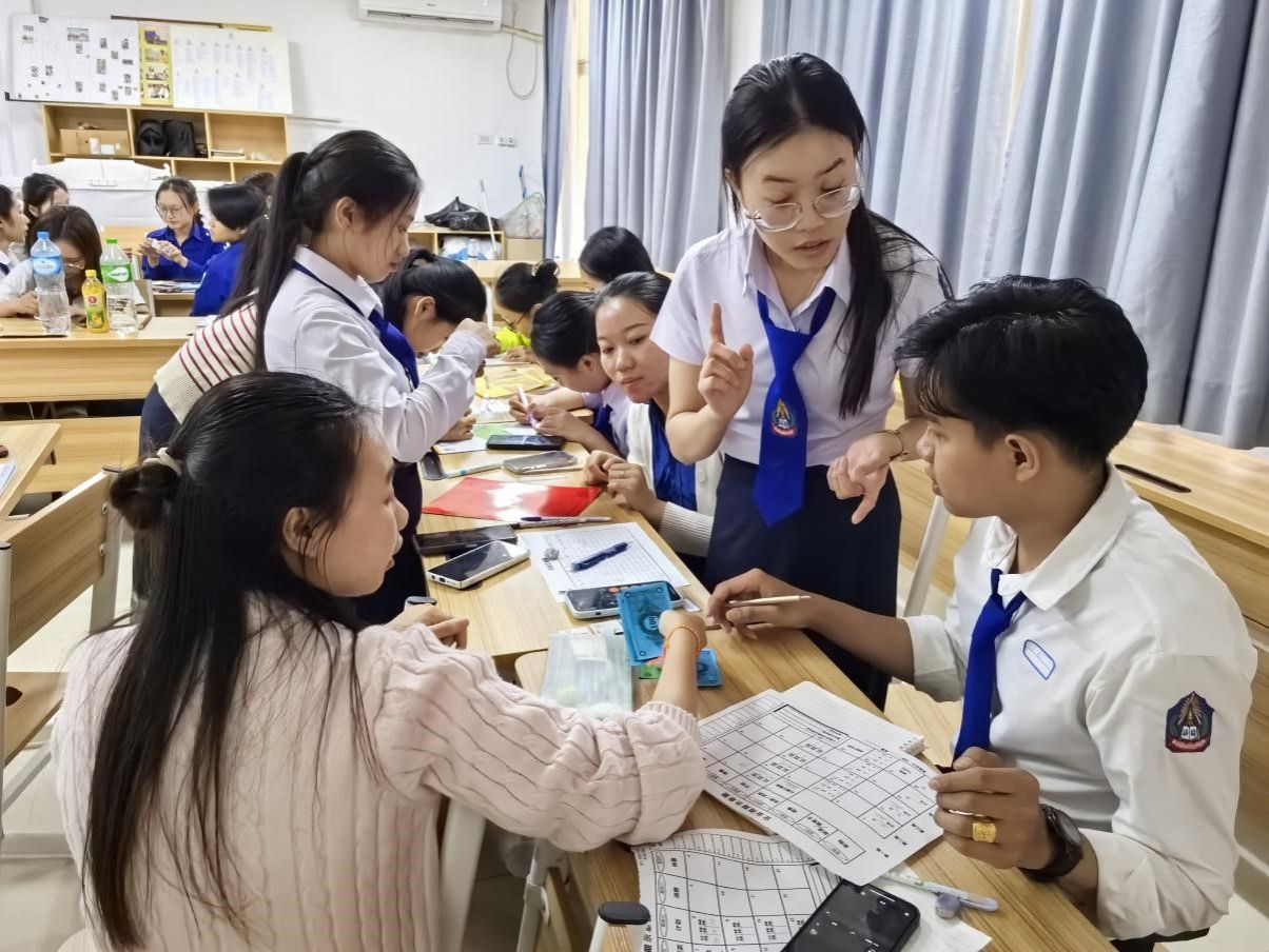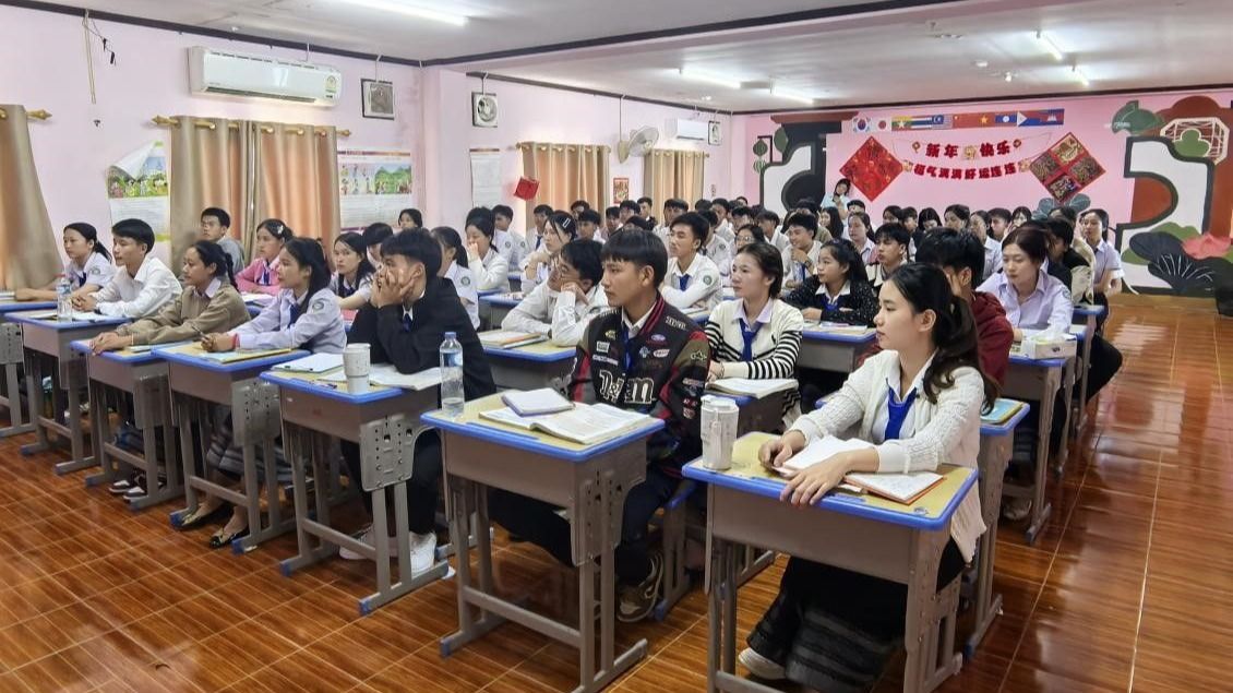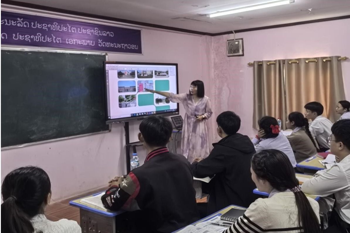 当日下午,代表团为中老友谊学校60余名高中学生带来一场生动有趣的特色汉语公开课。课程讲授中文学习方法与价值,并以“成都机遇”为主题,推介成都的经济文化优势及我校留学政策。课堂互动热烈,学生们展现出浓厚的中文学习兴趣和留学意愿,为中老留学交流储备了潜在人才资源。