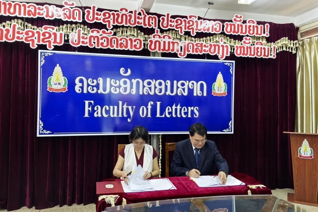 10月29日上午,代表团首站拜访老挝国立大学语言学院,与院长米赛、主任宋少楠等举行座谈。双方围绕“中文+职业教育”融合发展深入交流,签署《“中文+创新创业”课程共建及培训协议》和《汉语进修培训协议》。双方就创新创业课程共建、师资培训及后续实施方案进行深入探讨,并召开了课程共建研讨会。