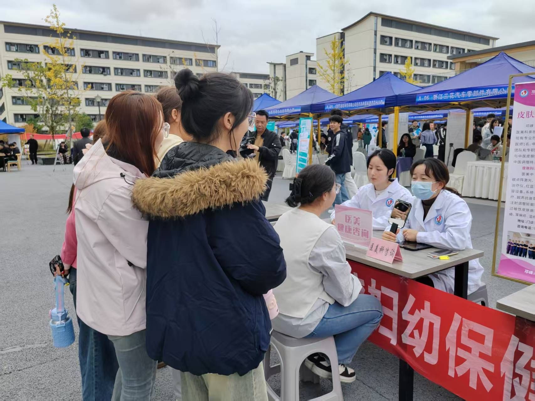 健康咨询方面,邛崃妇幼保健院设立了医美、妇科等多个咨询点,接受师生健康咨询。