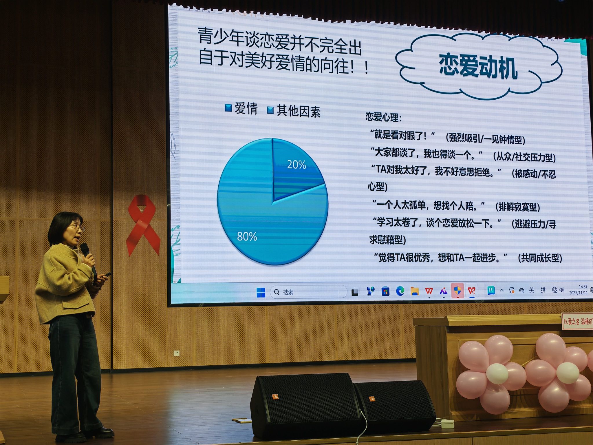 邛崃市妇幼保健院副主任医师樊咏丽以“青春期的启蒙教育”为主题开展知识讲座。她结合丰富的实践工作经验,从青春期生理特征、青春期心理特征、青春期性教育、青春期情感教育、青春期生活技能教育,以及青春期常见问题和应对策略等六个方面,向同学们进行专业分享,引导同学们正确看待和处理青春期存在的困惑。成都市疾控中心性病艾滋病防制科副科长、副主任医师代珍分享了学生防艾基础知识和预防要点,引导同学们正确认识艾滋病及预防艾滋病的方法。