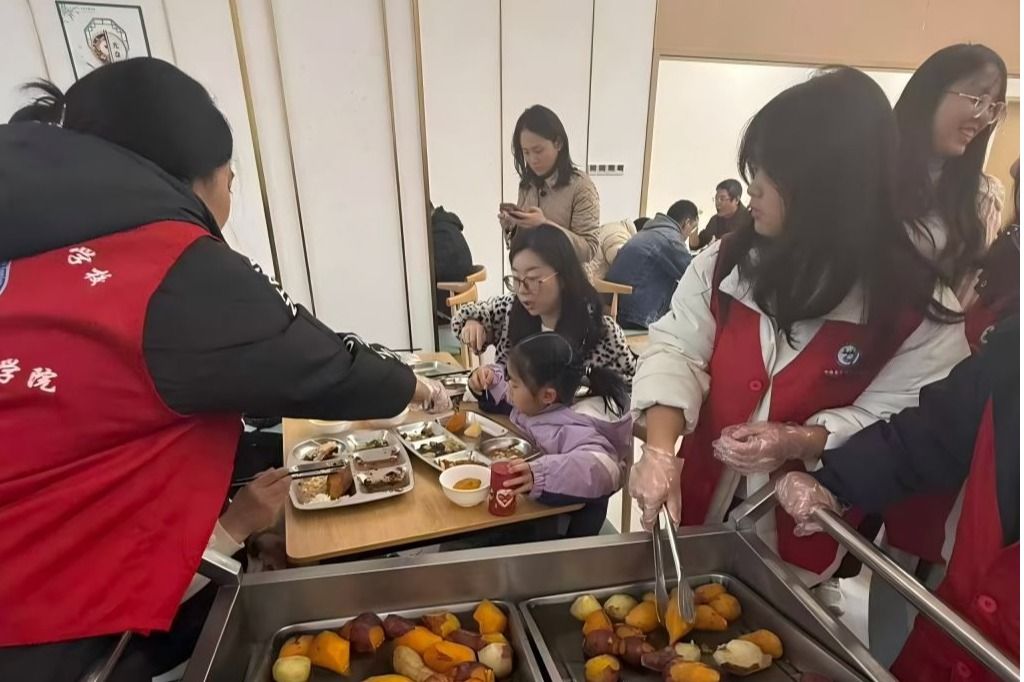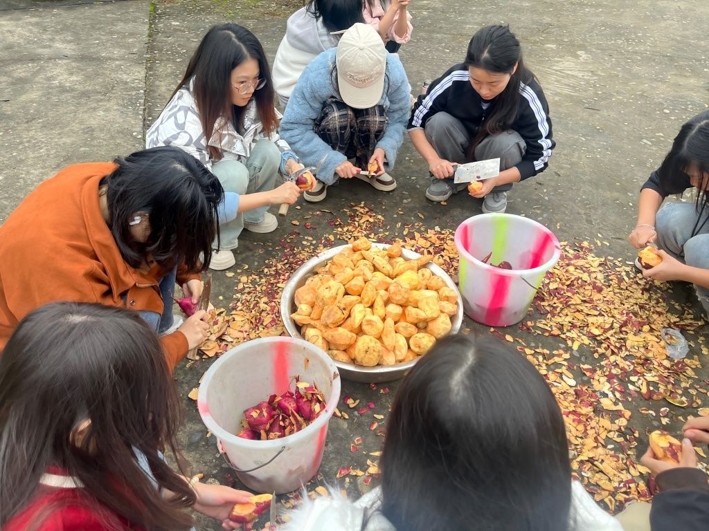活动当天,在劳动教育指导老师冉龙奎、许梦雪、李楠的悉心指导下,同学们热情投入,分工协作。大家围聚在一起,认真清洗沾满泥土的红薯,仔细地为红薯削皮,再将处理干净的红薯送入蒸锅。从生疏到熟练,从手忙脚乱到井然有序。整个准备过程锻炼了同学们的动手能力,并在协作中增进了彼此的情谊。最后,在犀浦校区的南苑食堂和邛崃产教园区的华章2019餐厅,热乎乎、软糯香甜的红薯被整齐摆出,志愿者们推着餐车给老师和同学们分享,香糯的红薯瞬间成为了最受欢迎的美食。