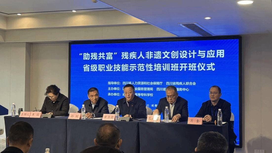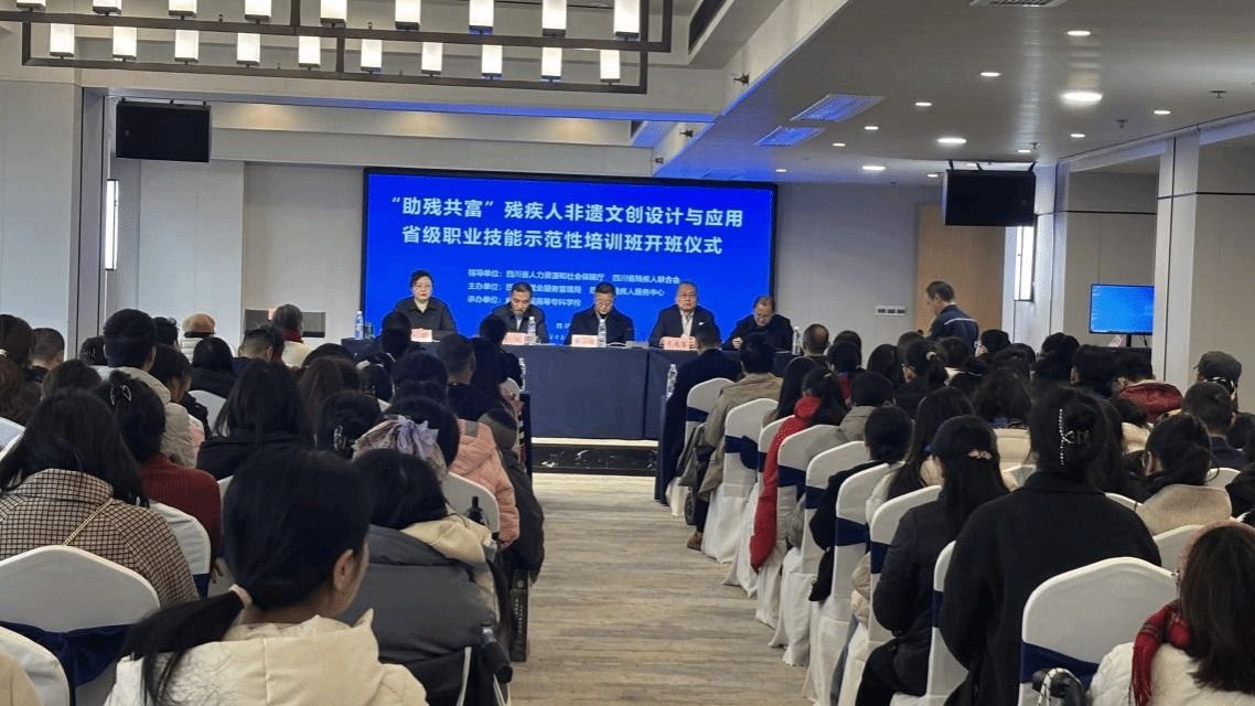 12月4日上午,由四川省残疾人联合会、四川省人力资源和社会保障厅联合主办的“助残共富”残疾人非遗文创设计与应用省级职业技能示范性培训开班仪式在我校举行。省残联党组成员、副理事长黄卫德,我校党委副书记、校长孙锐出席并讲话,人力资源社会保障厅二级巡视员王成富宣布开班。