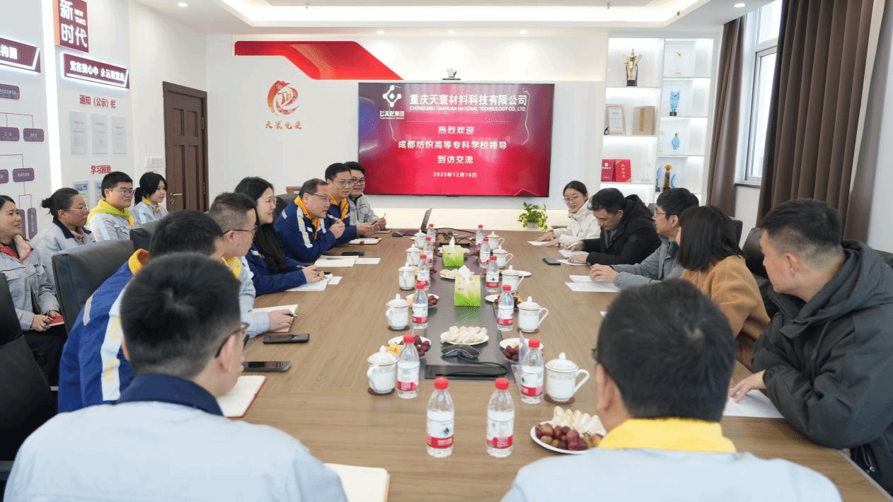 12月16日,副校长宋超,纺织工程学院院长宋雅路、党总支书记罗娅及博士教师代表等一行5人赴重庆天寰材料科技有限公司开展交流。天寰材料董事长杜迅、党总支书记王雁、总经理代平等公司领导及部分校友出席交流会。双方在党建联建、人才培养、实习就业等方面达成了合作共识。