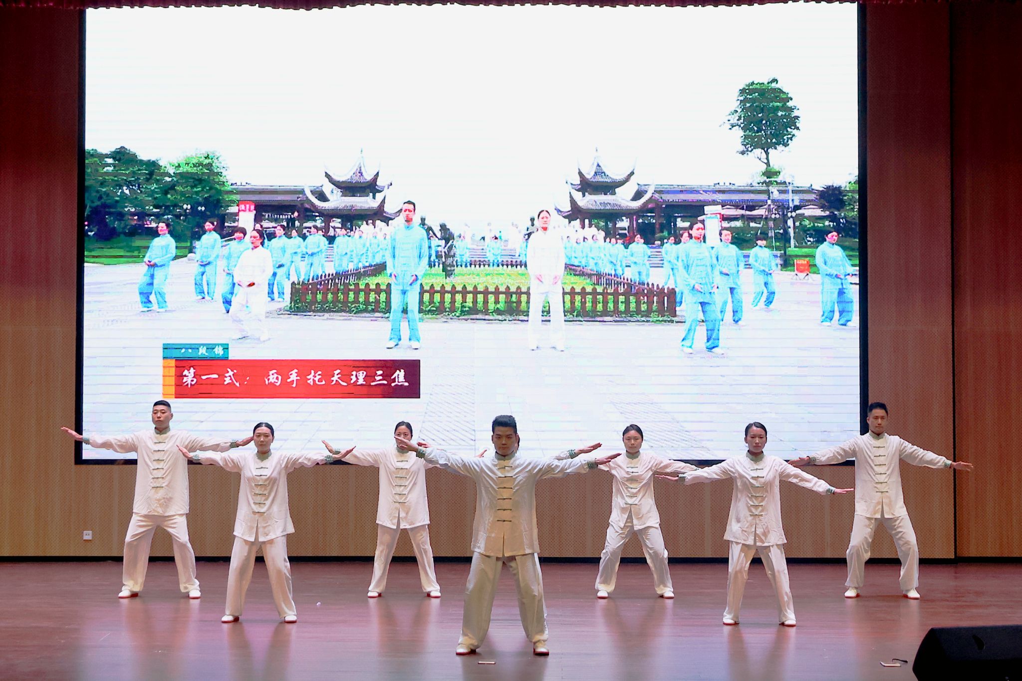 邛崃市中医医院嘉宾应邀上场,友情演绎《健身气功·八段锦》,让师生沉浸式感受了传统养生文化的魅力。