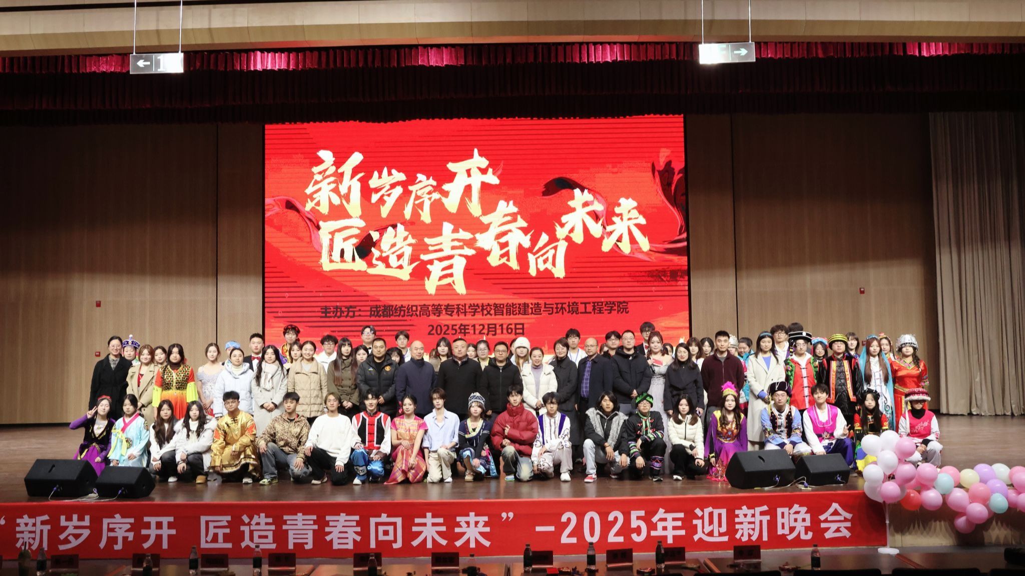 12月16日晚,建环学院在邛崃产教园区俊贤厅举行“新岁序开·匠造青春向未来”2025年迎新晚会暨年度表彰大会。院长秦朝昭、党总支书记鲜金宏等学院领导,邛崃市中医医院党委书记陈忠等校外嘉宾,学校相关职能部门及兄弟学院代表与近400名师生齐聚现场,共赴这场青春盛会。