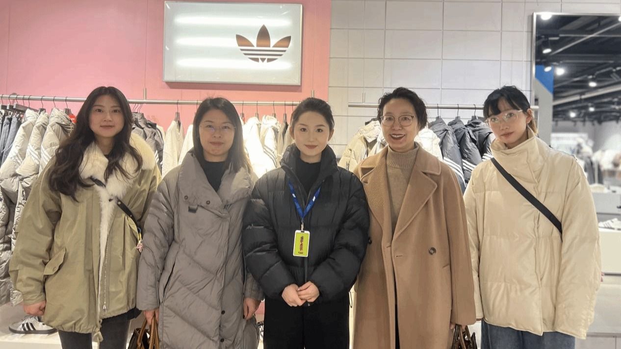走访期间,老师们专程看望了今年12月刚入职劲浪体育阿迪达斯事业部的应届毕业生娄春梅。作为一名零售管培生,娄春梅凭借扎实的表现,获得了部门领导的充分肯定。她主动向老师们介绍了品牌文化、店铺新品与陈列思路,并分享了入职后的成长感悟。娄春梅的管培生实习表现,展现了纺专学子扎实的专业素养和良好的岗位适应能力。