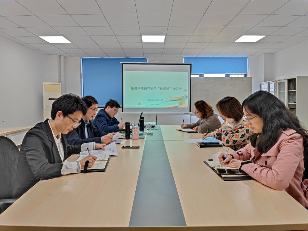 4月7日,数管学院在学院会议室召开领导班子“转提抓”专题学习会,学院全体领导班子成员参加会议,党总支书记王霖主持会议。