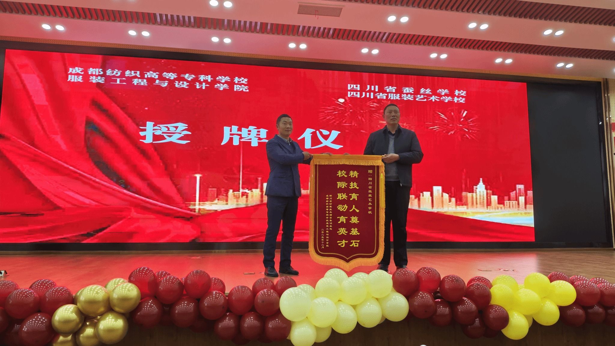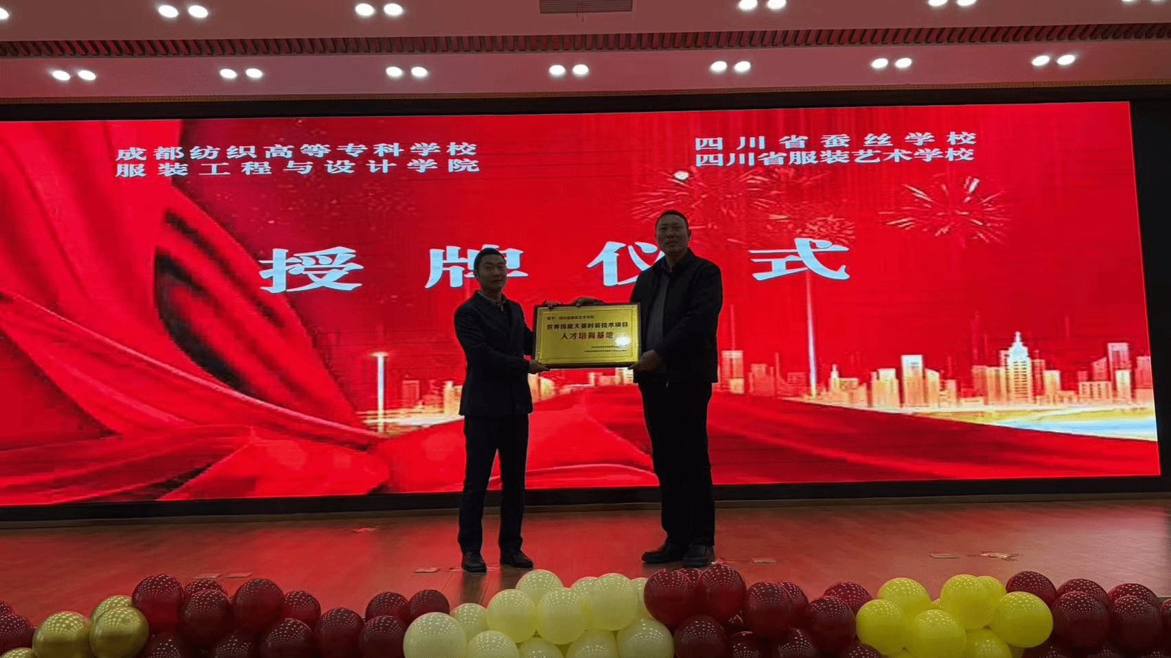 活动中,我校服装学院向四川省服装艺术学校授予“世界技能大赛时装技术项目人才培养基地”牌匾,并赠送“校际联动育英才·精技育人奠基石”锦旗,标志着两校合作迈向更深层次、更广领域,将携手搭建更坚实的平台,为四川乃至全国服装产业培养更多高素质技能人才、能工巧匠。