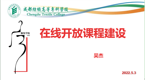副院长吴杰结合《服装概论》省级精品在线开放课程,分享了在线开放课程建设心得。根据学校在线开放课程平台相关功能模块,吴杰从课程框架设计、素材建设、推广应用、申报认定等方面分享了在线开放课程建设经验,帮助老师们在日常教学中边教边建,边建边用,从而孵化更多的在线开放课程项目。