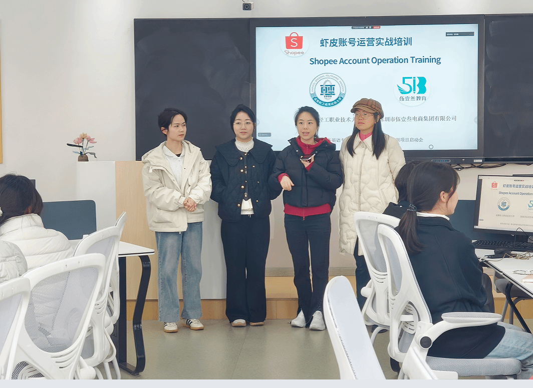 3月17日,文旅学院商务英语专业“虾皮账号运营实战培训”项目在邛崃产教园区正式启动。深圳市伍壹叁电商集团资深教师Estella·周、跨境电商部负责人,文旅学院副院长梁金柱、商英教研室教师及全体学员共同参加开班仪式。