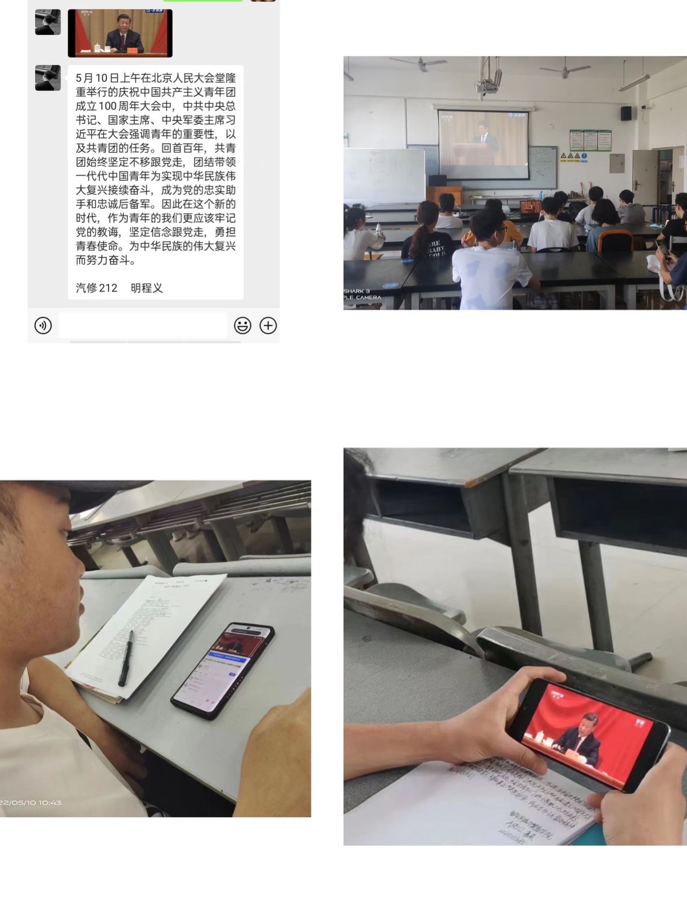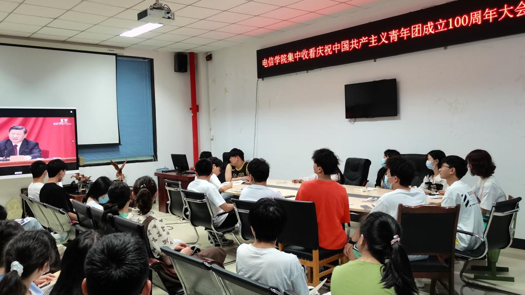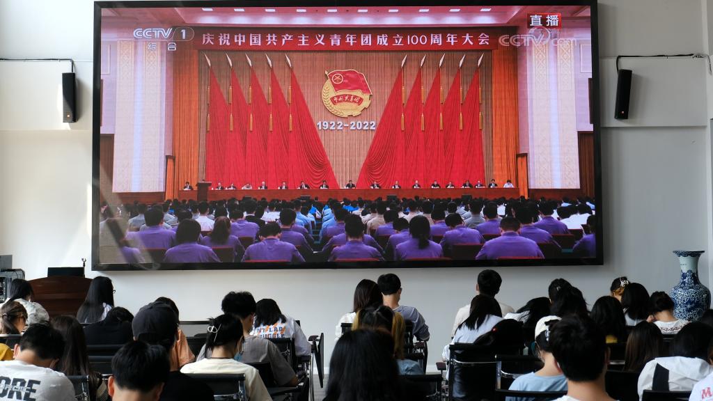 5月10日10时,庆祝中国共产主义青年团成立100周年大会在北京人民大会堂隆重举行,中共中央总书记、国家主席、中央军委主席习近平出席大会并发表重要讲话。成都纺织高等专科学校师生在学校党委书记蔡玉波、党委副书记周红带领下,在1个主会场和9个分会场同步收看大会本场直播;同时,部分同学响应校团委号召,在实训室、教室、寝室等地分散收看收听,校内形成了学习热潮。