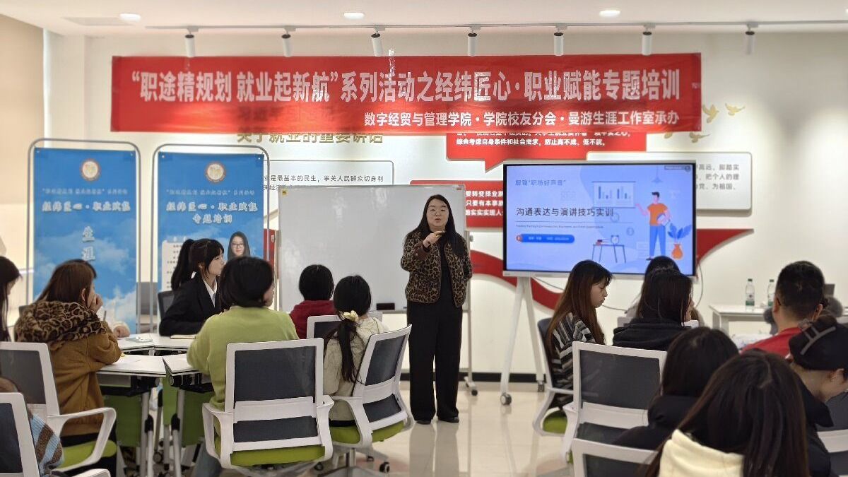 3月24日,“经纬匠心·职业赋能”系列培训第七期——“解锁职场好声音”沟通能力提升工作坊在学校致知楼一站式服务中心举行。资深职业指导讲师李曼通过理论讲解、模型拆解、互动实操、情景模拟等多种形式,让参与的数字经贸与管理学院大一大二同学系统掌握职场沟通技巧,练就高效表达的“职场好声音”,提升了求职与职业发展竞争力。