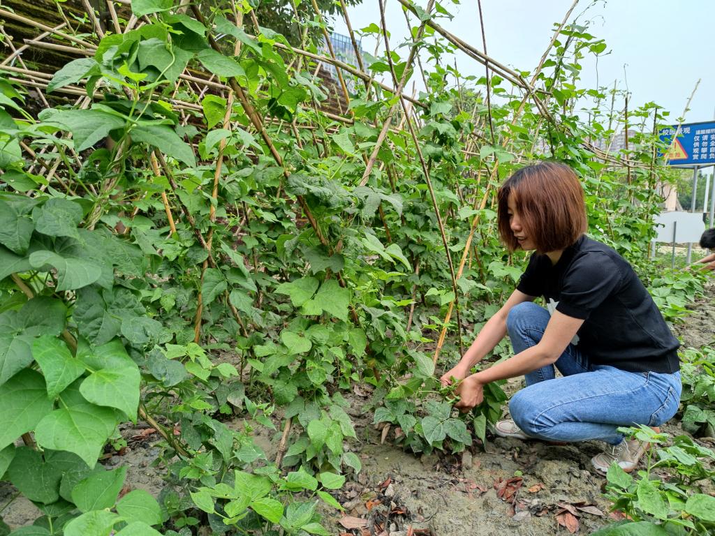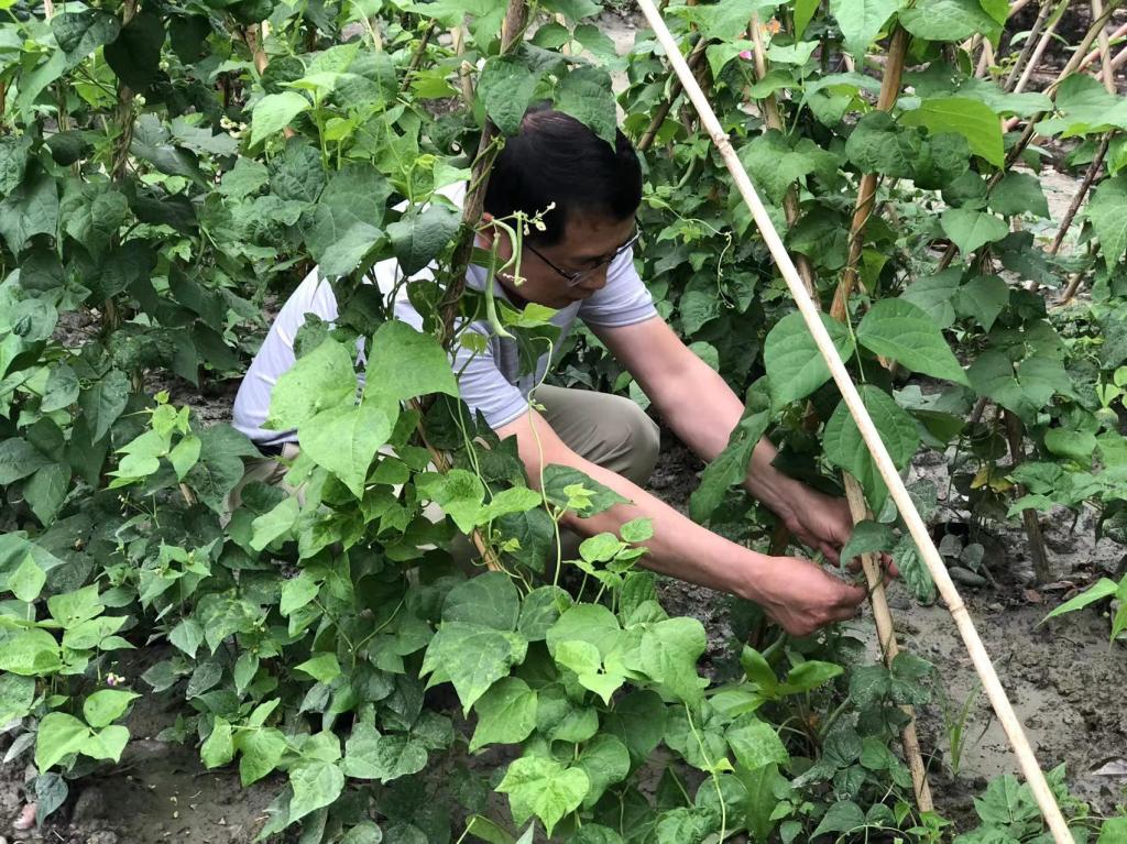 摘四季豆喽……哈哈哈,这样的感觉是愉悦的,是发自肺腑的喜悦,同学们在各自承包的地里忙得不亦乐乎。