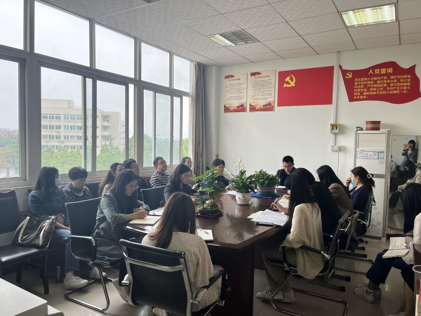5月17日,马克思主义学院在教学楼D403召开会议,认真学习学校全面从严治党会的内容和精神要义。
