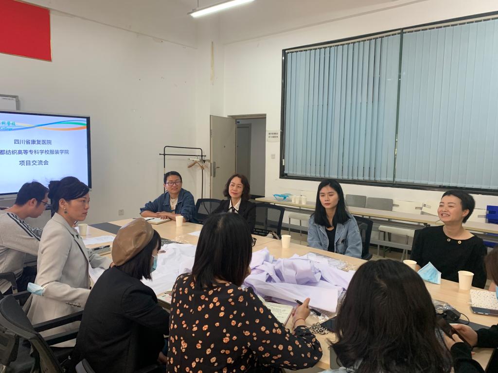 5月21日,服装工程与设计学院与四川省八一康复中心在E211进行医护人员工作服换装项目洽谈会。八一康复中心后勤保障部主任唐洁一行,服装学院院长李晓岩、工程教研室主任胡毅、设计教研室主任阮劲梅,专业教师周怡江、王一乔、熊媛园、蒋康等参加会议。