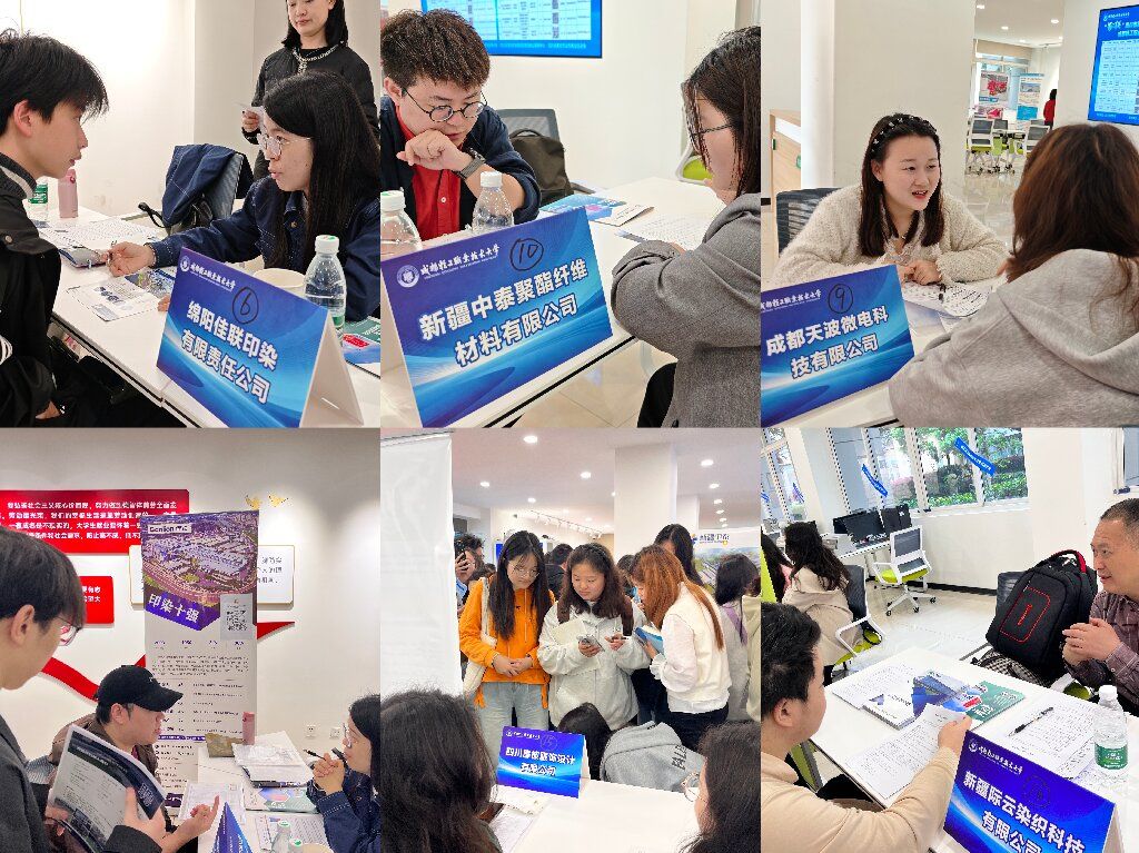 4月3日,我校2026届联办职业本科毕业生专场招聘会在犀浦校区“一站式”就业育人基地举行,中国核工业二三建设有限公司、成都航发机器人有限公司、新疆中泰聚酯纤维材料有限公司等16家优质企业参会,提供就业岗位400余个,覆盖纺织服装、智能制造、电子信息、新材料等领域,200余名联办本科毕业生到场求职应聘。