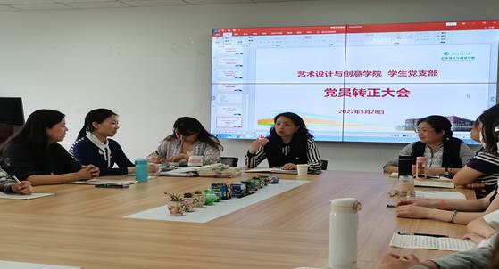 5月27日,艺术设计与创意学院学生党支部召开预备党员转正大会,联系支部的学校纪委书记张江婴全程参会,并作工作指导。转正大会由学生党支部书记林静主持。