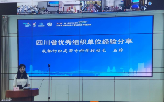 四川大学和我校作为第七届“互联网+”省优秀组织单位代表作经验分享。石静校长分享了学校多次获得省“互联网+”大学生创新创业大赛优秀组织奖的工作经验,并从“顶层设计、系统规划,筑牢‘双创’教育根本”、“专创融合、产教融合,拓宽‘双创’育人平台”、“精心组织、以赛促教,点燃‘双创’参与热情”等三个方面分享了我校组织师生开展、参加比赛和深化创新创业教育改革的经验。