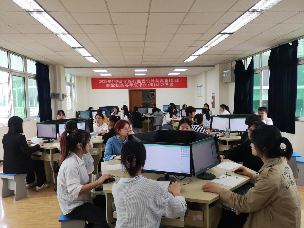 学校作为本次1+X研学旅行课程设计与实施策划与管理职业技能等级证书考核站点之一,经过半个多月的申报与建设,顺利通过站点遴选。在此次考试组织过程中,为确保1+X考证工作顺利开展,从考前动员、师资培训、学生选拔、课证融通、考务安排、设备调试、组织考试等方面都进行精心筹备,严格按照1+X证书制度考核管理规定部署考务组织工作。在学院教师的通力协作下,考试过程纪律严明,平台稳定,圆满完成各项任务,考试通过率达到100%。本次考试为学院进一步推进学历证书和职业技能等级证书的有机衔接,深化教学改革和课程改革,培养技能型研学人才奠定了坚实的基础。