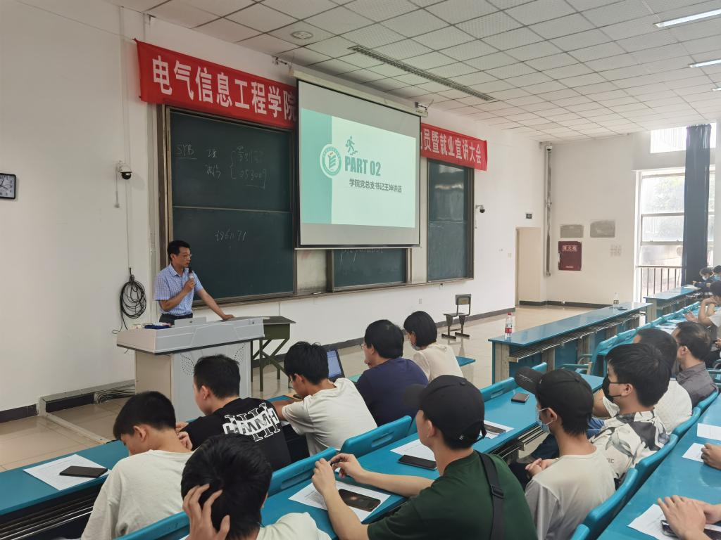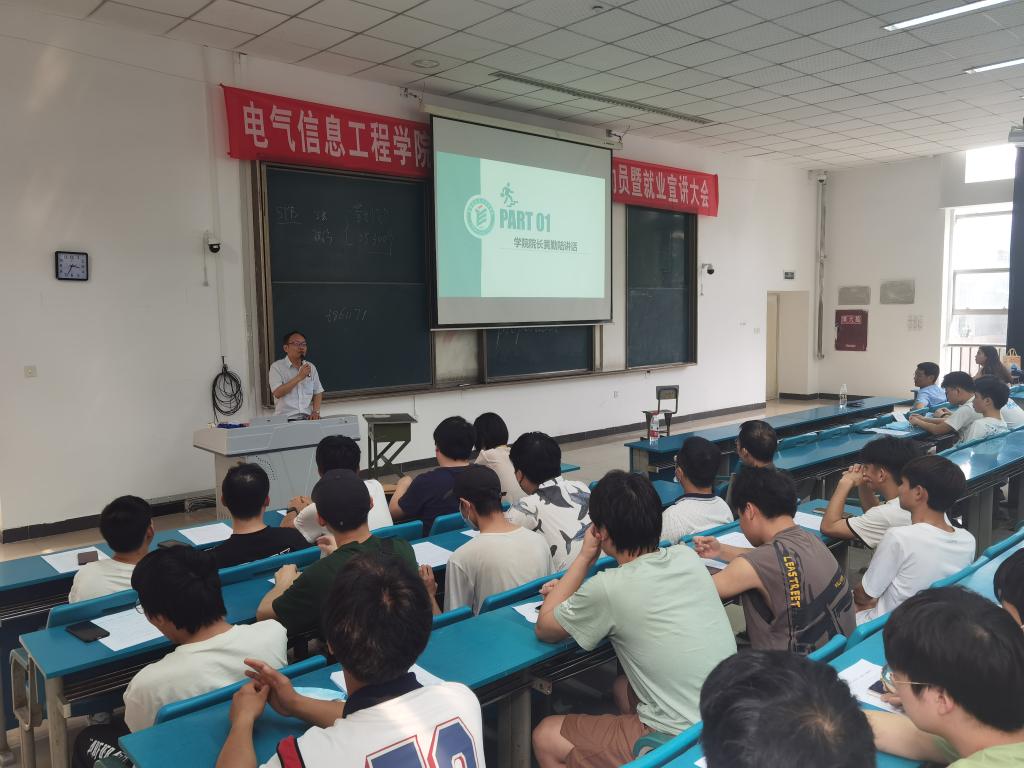 5月31日下午,电气信息工程学院2023届毕业生岗位实习暨就业动员大会在教学楼C101召开。学院党政负责人、专职副书记、相关专业负责人、实习指导老师、班级辅导员和电气自动化技术、建筑电气工程技术、应用电子技术3个专业200余名同学参会。