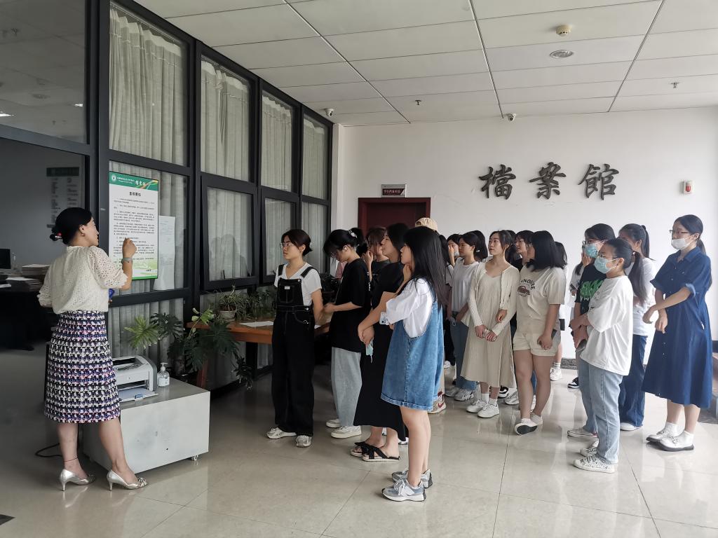 活动中,来自各个学院的学生代表走进档案馆,进行现场参观与学习。陈列室中存放着的奖状与证书向同学们展示了学校过去一路走来取得的成绩、像在无声地述说着一个个奋斗的故事。张明丽老师从学校档案馆的历史讲起,为大家讲解了关于档案的基本知识以及档案与个人的密切联系,并带领大家参观了档案馆陈列室。张老师鼓励各位同学努力学习、积极进取,争取在大学期间为自己的档案增添更多奖状,以奋发昂扬的姿态迎接党的二十大胜利召开。
