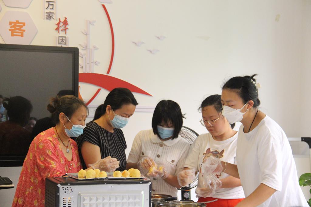 本次活动主要包括两个方面,一是食品安全知识宣传;二是糕点制作。团队成员、食品201班的申敏同学依托专业特点对食品安全知识进行了普及,随后讲解了宝宝蛋黄酥、蛋挞等糕点的制作过程,并让居民们在队员的指导下自己动手实践。活动过程中充满了欢声笑语,弥漫着阵阵香味,最后,大家都感受了自制食品的安全、健康和美味。