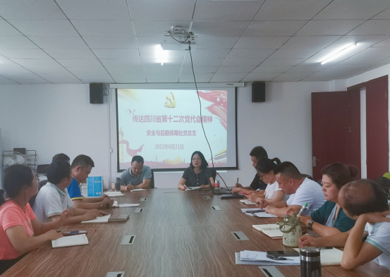 6月21日下午,保障处党总支在党员活动室学习四川省第十二次党代会精神,党总支书记李英主持,全体党员同志参加了学习。
