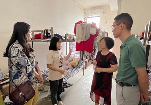 在公司总经理李亚东先生陪同下,老师们深入工厂,了解学生们专业实践状况;深入寝室,了解同学们的生活情况,关心同学们的饮食起居。老师们鼓励同学们“大胆做、认真学”,要善于学习,提高专业能力;勇于吃苦,磨练坚强意志;遵纪守法,树立良好形象;发挥团结互助精神,确保实习安全。