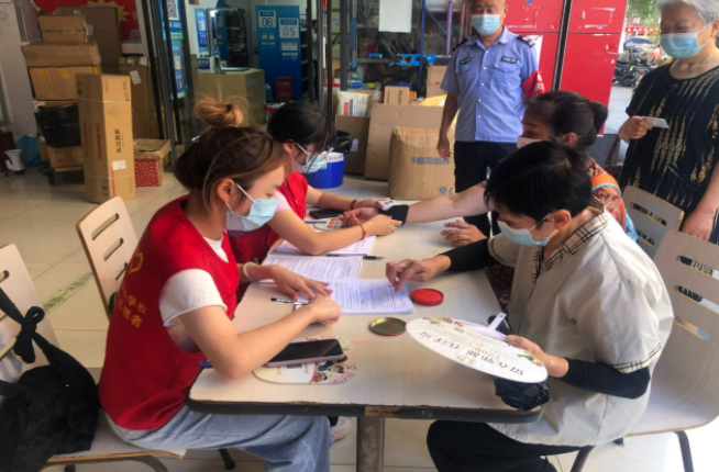 6月28日,服装学院“匠心践行”社会实践志愿服务队根据铁门社区需求,与社区工作人员前往原喜玛特超市新冠疫苗临时接种点,为周边居民进行新冠疫苗接种服务,并号召符合接种条件的居民群众“应接尽接、应快尽快”,全力保障辖区居民的健康安全。