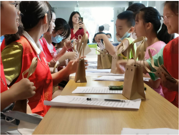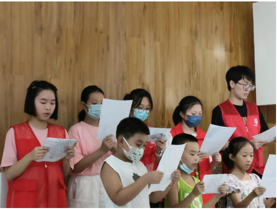 志愿者们冒着酷暑高温积极宣传、布置场地、准备奖品。活动中,孩子们在志愿者的带领下,诵读国学经典名篇。志愿者们用富有感染力的声音对《英雄》《感恩》《我们的祖国》中经典的语句进行诵读,让孩子们接受中华优秀经典的熏陶,感悟做人道理,塑造品德。