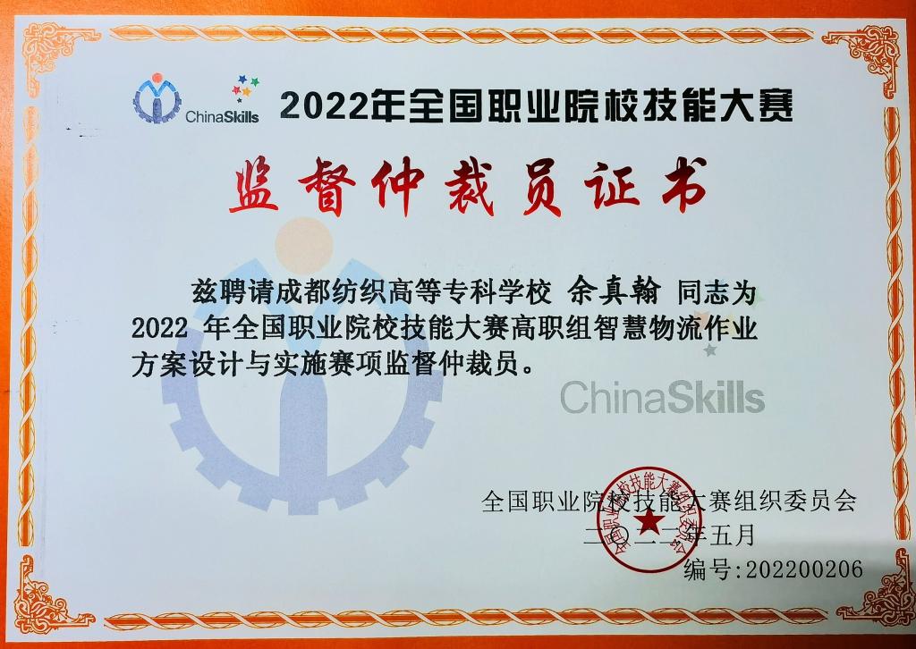 根据2022年全国职业院校技能大赛高职组智慧物流作业方案设计与实施赛项执委会邀请,我校物流专业余真翰教授于8月20日至25日赴天津交通职业学院担任赛项监督仲裁长工作,并圆满完成相关任务。