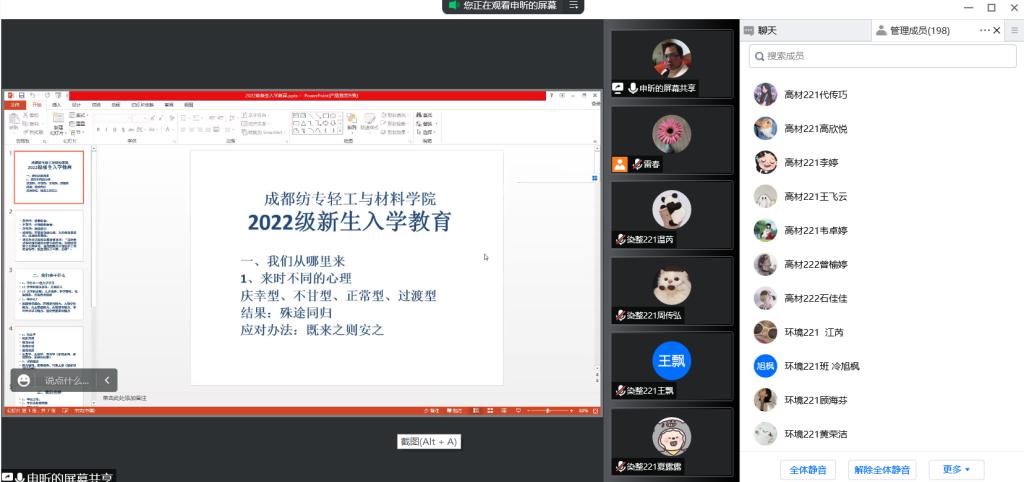 在此次“云”入学教育工作中,轻材学院注重周到和细心,根据当前新生的心理状况开展针对性的入学教育,体现具有成纺特色“暖心、同心、爱心”的真诚和用情,用心让新生们真正感受到收获与充实,让大家感受到了一场特殊的“沉浸式入学”和大学新阶段的起跑号角。