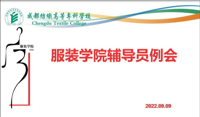 9月9日下午,服装学院在召开节前专兼职辅导员线上会。会议由党总支书记太扎姆主持,全体专兼职辅导员参加。太扎姆传达了近期学校防控工作要求,总结了近期服装学院在校学生的各类防疫工作开展情况,并就老生和新生工作分别进行了不同要求的部署。