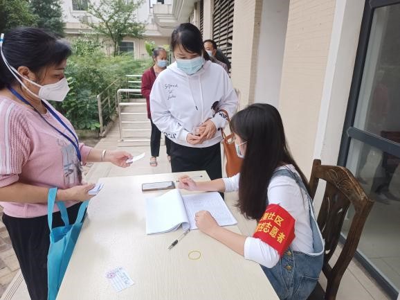 校外志愿者也积极参与到社区和家乡的志愿活动中,他们在一线努力的身影,诠释了成纺青年的担当与奉献。纺织工程学院针织212班陈艾霞在成都市龙泉驿区大面街道五星社区组织群众做核酸、发放出入条、信息录入……她说,“志在心中,愿在行动”,尽微薄之力,不负青春,不留遗憾。数管学院跨境211班王恒康说,在关键时刻,需要他这样的年轻人站出来担当作为,为疫情防控贡献力量。