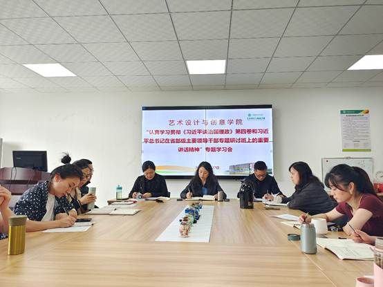 9月27日,创艺学院组织全院教师在产教楼B205会议室集中学习《习近平谈治国理政》第四卷和习近平总书记在省部级主要领导干部专题研讨班上的重要讲话精神,学校纪委书记张江婴出席会议并讲话,学习会由学院党总支书记刘登秀主持。